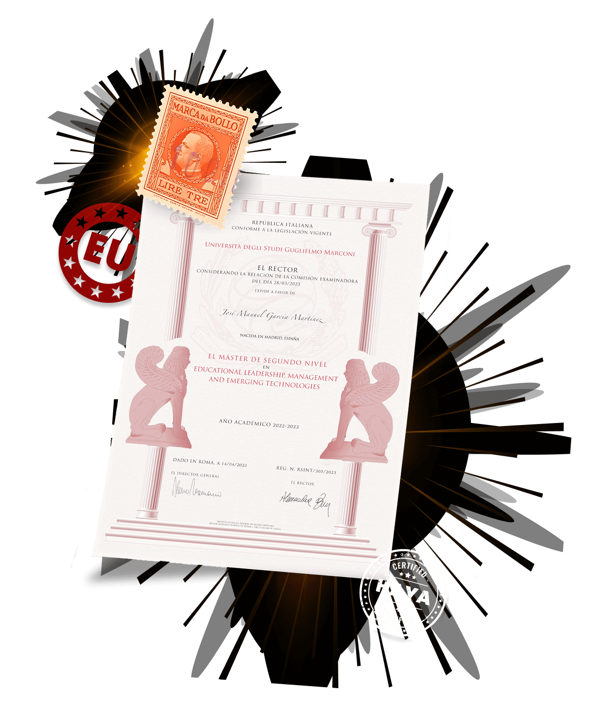 Nuestros másters oficiales universitarios cuentan con reconocimiento del MIUR, garantizando validez académica y legal en toda Europa, además de posibilidad de homologación internacional con la Apostilla de La Haya.